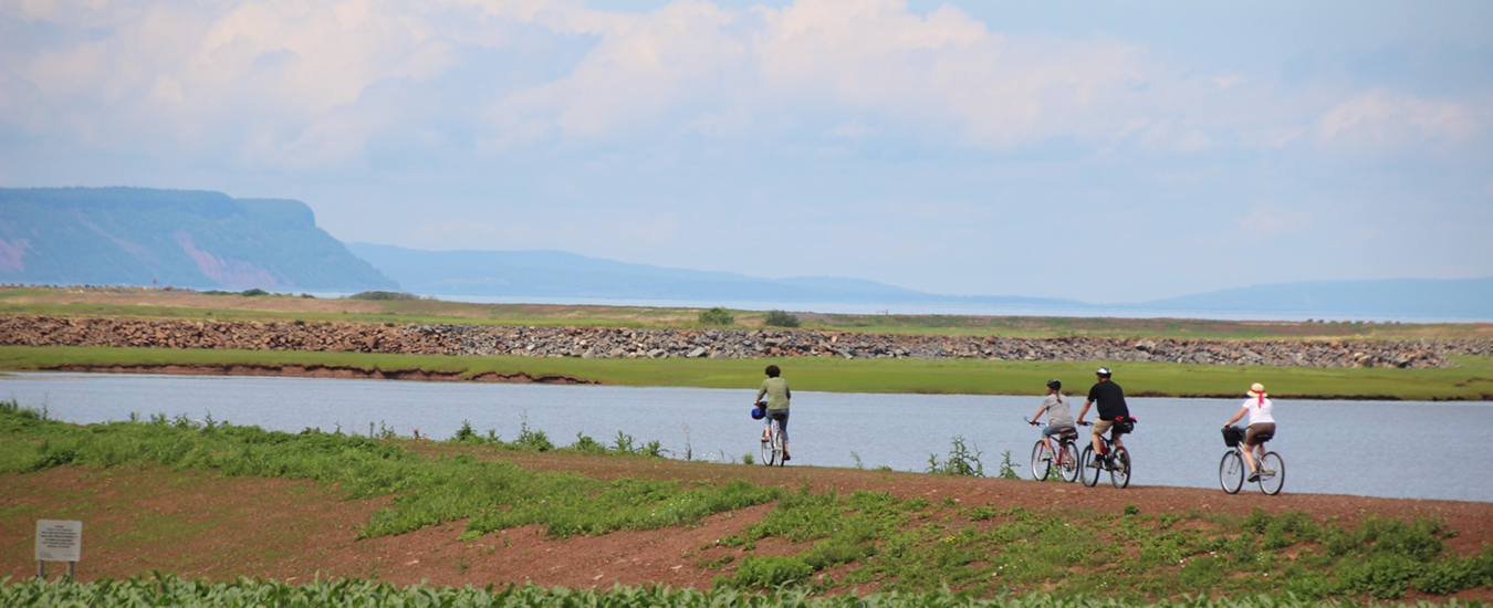 Depending on your plans for adventure, there are numerous attractions along the trailway, which may prompt you to go exploring. Starting in Grand-Pré, the UNESCO World Heritage Site, you can take in the history of the Acadians at the national historic site, visit the French cross that marks the departure point of the Acadians during the Expulsion, and cycle across the dykes to Evangeline Beach. A visit to Domain de Grand-Pré Winery is a must for those with a fondness for the grape, and you can also drop into Tangled Garden Preserves for treats and a visit to the gardens there.
