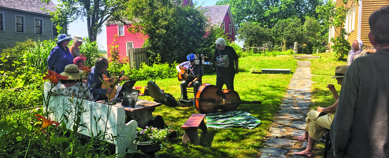 Mossman’s enthusiasm for all things Loyalist is infectious. She’s such a committed interpreter, she’s pulled her husband Rod Mossman into the museum as a volunteer. A classically trained musician and retired music teacher, Rod hosts an 18th century music jam every Monday afternoon right here in the shaded garden. While Rod awaits the arrival of other musicians, he joins our hands-on activities.