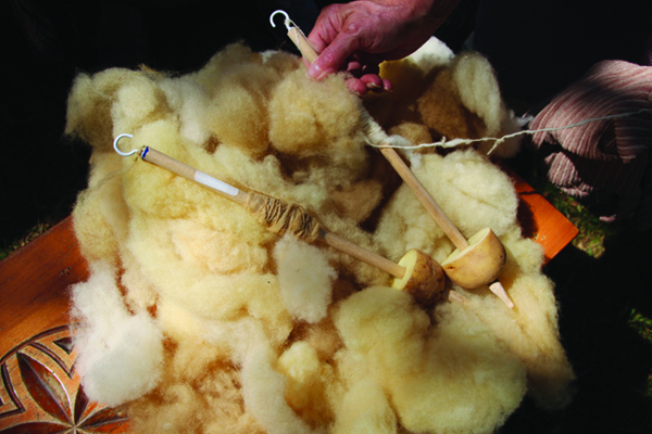 After a last sip of switchel, I turn my hand to spinning wool. Greta Mossman holds up a roka, a y-shaped stick also called a distaff, used to spin wool into yarn. She gives it a twirl, magically pulling a string of yarn from a fuzzy ball of wool sheered from local sheep. As she spins, she tells us that yarn got its colours in the 18th century from natural dyes made with things like yarrow and onion skins. “As we spin the wools together, we’re getting beautiful natural variations of colours.”