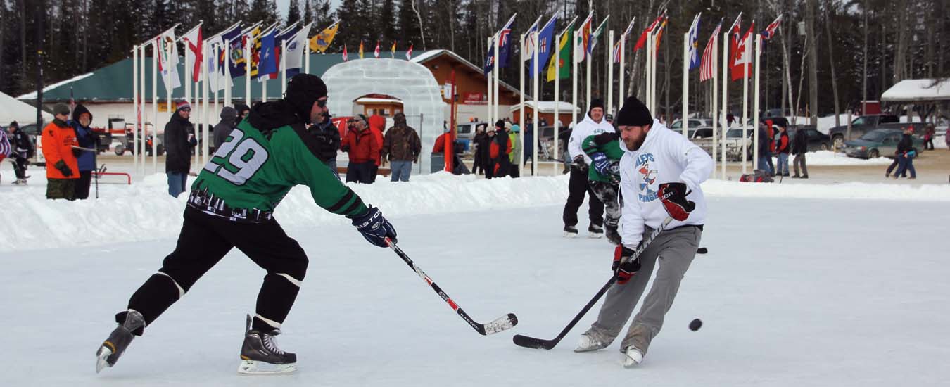 It’s 15 degrees below zero and I’m milling through a sea of smiling faces on the edge of Roulston Lake in Plaster Rock, New Brunswick. In front of us is a sight to behold—24 outdoor rinks. Twenty are occupied by 40 teams skating their hearts out, competing in the International Pond Hockey Tournament. Members of 80 other teams are nursing sore muscles, eating poutine, or kibitzing with others while hundreds of spectators join in the fun. Close by, toddlers to grandparents are skating on rinks earmarked for guests. Flags from across Canada, the US, Europe and further afield flap in the wind.