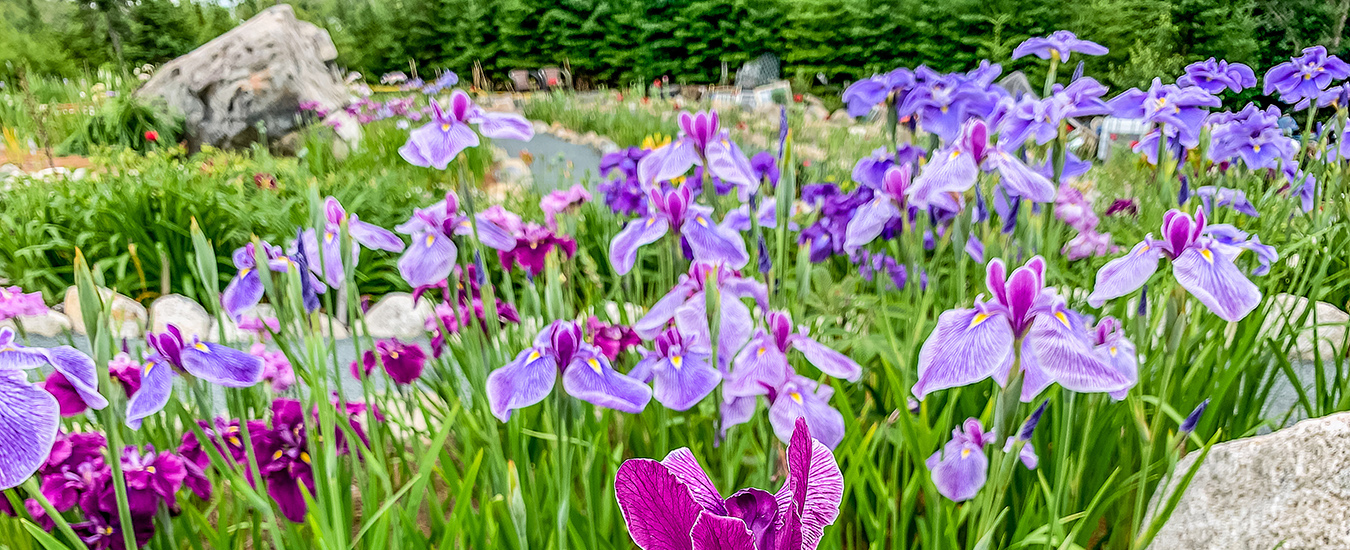 IRIS ENSATA Most of us are acquainted with bearded and Siberian iris, as well as the wild blue flags that grow in moist areas in nature. Japanese iris like the latter growing conditions as well—they are sometimes referred to as water-iris, and indeed they can flourish in shallow moving water like man-made ponds with stream functionality, ditches, or other wet areas. The butterfly-like flowers come in shades of purple, white, rose, many with contrasting veining or edging to the petals. Local plantsman Allan Banks grows a number of varieties, which he showcases in his acres of gardens in Salmon River Bridge, NS (not far from Musquodoboit Harbour). If you want to know more about these elegant perennials, the Society for Japanese Irises is holding its 2020 convention in Truro, NS in mid-July, featuring a tour of several gardens. (see socji.org/ji-convention-2020 for details.)