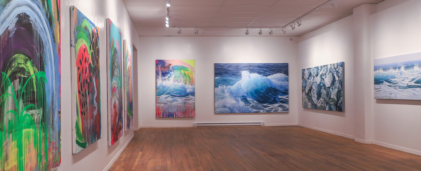 Working with jolts of neon and open fields of colours that typified the audacious style of painting that emerged in the 1950s and 60s, Betts would seem an unlikely choice for the seascape painter to collaborate with. But a year ago, the perfect opportunity to work together presented itself. She invited the NB artist to join her for an eight-week artist in residency program at the James Baird Gallery in Pouch Cove, NL. It would be Burns’ third trip to the residency, an artist’s haven that hangs on the northeastern edge of the Avalon Penisula outside St. John’s. For the last seven years, she had been represented by the gallery owner and had worked on several collections during her time in the small port community. Burns and gallerist James Baird had invited a group of seascape painters from other parts of the world to gather in Pouch Cove. Baird says there was immediate response to the invitation. Artists around the world were aware of the tiny gallery with the huge reputation for being one of the most unique residency programs. But pandemic restrictions were making it difficult for travel. Burns and Baird had to push pause on the international invitation, but the delay created the occasion for the two artists—who once studied together at the Nova Scotia College of Art and Design in Halifax—to dive into a long talked-about collaboration.