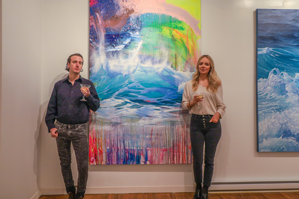 But when Betts was working on his underpainting, it became evident to both artists that there was something else happening. Burns’ wave crested in the middle of the canvas, leaving the bottom third undisturbed and the illusion of being under the surface of water.
