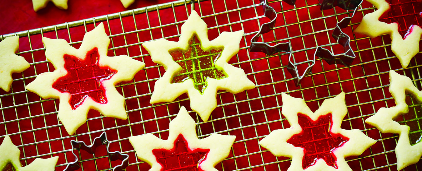The fourth variation was quite possibly the most fun. We cut out snowflake shapes then used a smaller cutter to take out the center; we found that removing the centre after we had placed the cookie on the parchment lined baking sheet work best, as removing the centre left us with a bit of a flimsy cookie that was tricky to move from counter to pan. We then took some Jolly Rancher candies and broke them up, leaving them quite coarse. We sprinkled those into the middle and baked them. The candies melted and gave us a beautiful window pane effect.