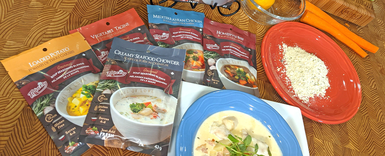 Unlike other mixes on the market that consist of freeze-dried vegetables, noodles and such, Falavory soups are seasoning mixes that allow you to add all of your favourite soup items to make a great soup. Each packet has a recipe in the back to guide you, and following their four-easy-steps process allows you to have a perfect pot of soup—that tastes like it’s been slowly simmered—on the table in just 30 minutes.