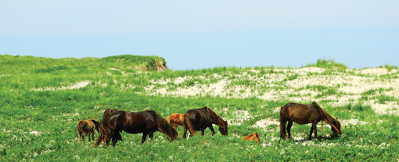 Daniel, a tall, lanky fellow with serious eyes and a crisp, green Parks Canada shirt, gathered our group and suggested we hike to Bald Dune—the highest point on the island—to search for horses. We eagerly followed him away from the beaches and into the deep sand of the dunes.
