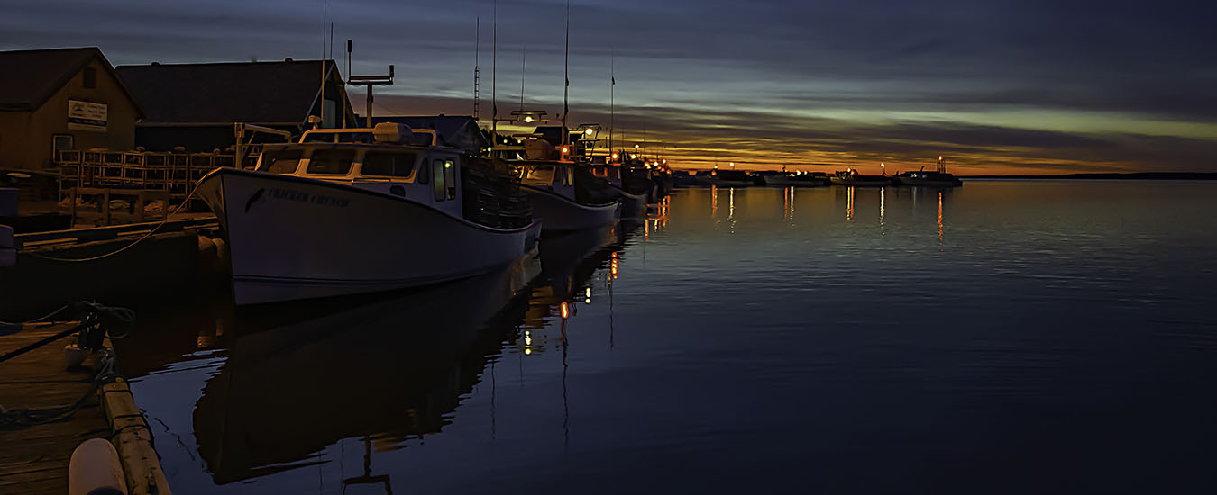 Down at the wharf stories are tossed around about setting day adventures, the price of fuel, bait, and the price the fishers will be paid for this year’s catch. They are ready to sail and wait on word from the fleet. Their baseball mitt hands holding steaming coffee in anticipation. One by one, they jump on their boats and pull away from the dock, forming a seamless line as they slowly weave their way out of the harbour, navigating with impressive skill up the narrow channel, around the point, and toward open water where they sit and wait for the word from the harbour master that they are clear to sail to open water.