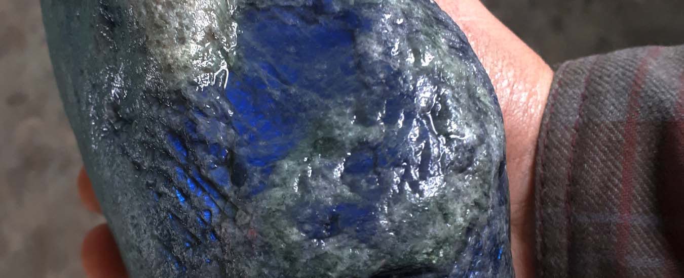 Kyle likes to keep the locations of his labradorite under wraps. “Most prospectors are looking for gold and stake claims, but I still like to keep most of my locations secret. It’s just one of those things,” he says.