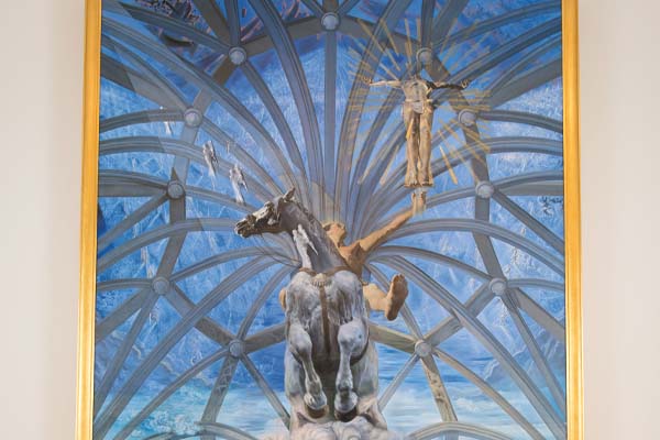 I’m flat on my back on the floor in the Beaverbrook Art Gallery in Fredericton, NB, looking up at a giant white horse. The 3-D experience is making me giddy. And, no, I’m not taking any funny stuff. Rather, I’m looking at Salvador Dali’s painting, Santiago El Grande, an 18x12 ft. (407.7 x 304.8 cm) oil on canvass that the artist painted in 1957. This masterpiece depicts James the Great, one of the apostles and the patron saint of Spain.