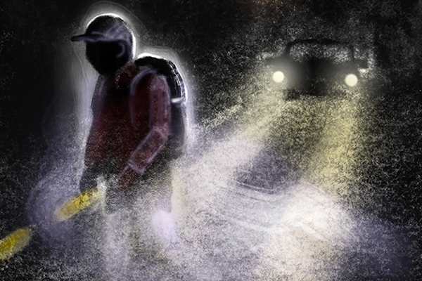 Country roads can have an association with otherworldly wanders and near my home, a traveller has traced his steps countless nights. For those who encounter the form, it is always moving along with a hefty rolled-up quilt across his back. A red-checked coat and thick knitted wool toque indicate a lumberman or trapper returning home. But the unsettling part—and on this, all agree—the shape is trudging along steadily on no legs! Unsettling enough to see a shade in the car head lamps, but one seeing drifting ahead in mid-air would certainly stay with you. Who is he and why he never reaches his destination no one can say. So, steady as the seasons, he walks this empty country road, with the way forever winding and endless.