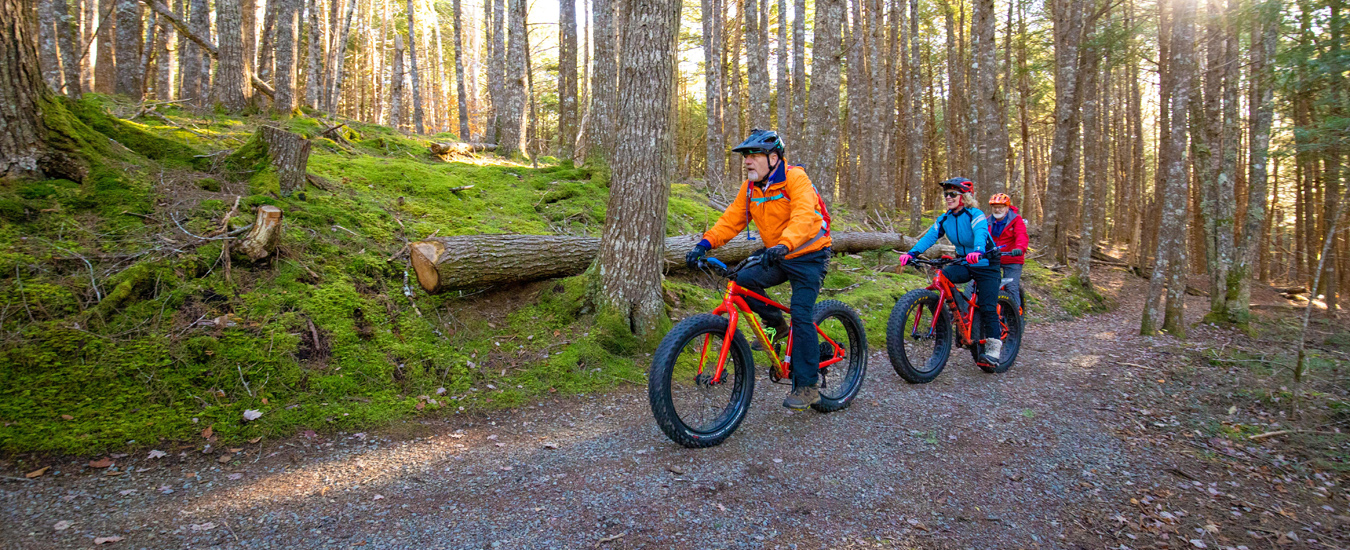 The 123-kilometre Rum Runners Trail follows an old railway bed from Halifax to Lunenburg. Riders can hop on nearly anywhere along the six sections that make up the complete trail. With no technical elements other than length, it’s ideal for family outings and distance riding through mixed forest and small towns.