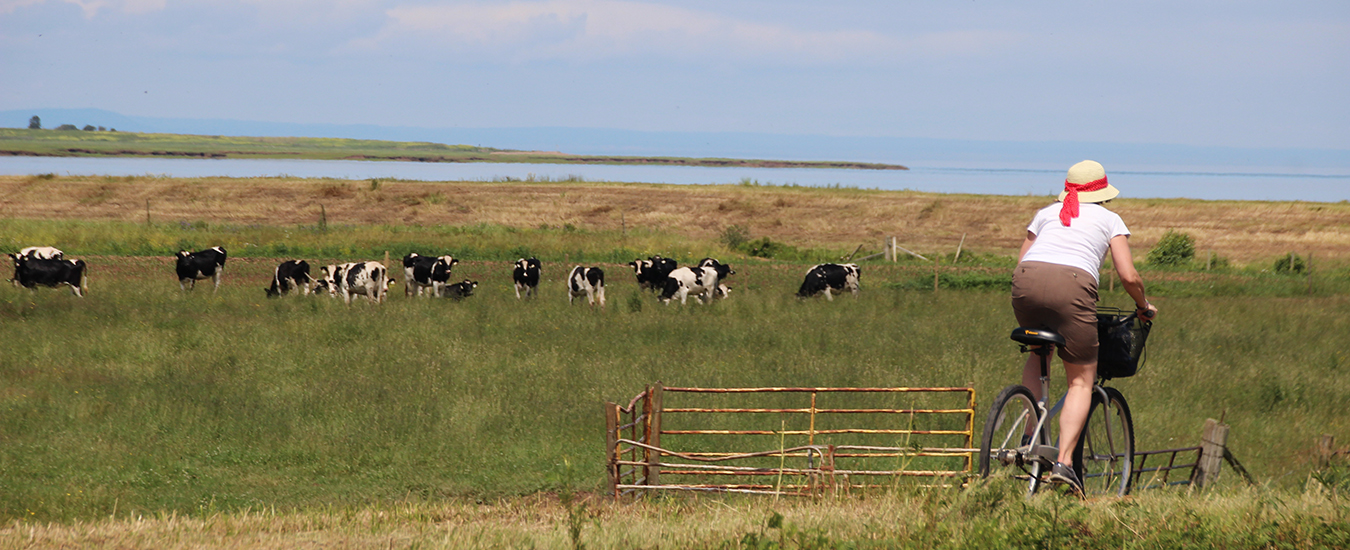 Inside the Visitor Centre at nearby Grand Pré National Historic Site just outside Wolfville, a worn piece of wood holds the secret to the dawn of farming in the Annapolis Valley. It’s a piece of pine from a tree that was 274 years old when it was cut down in 1686 to build an aboiteau or wooden sluiceway. The French speaking Acadians who settled here among the indigenous Mi’kmaq people brought their dyke technology with them when they crossed the Atlantic. They installed these sluiceways beneath the dykes to drain the shallow salt marshes so they could plant crops. The land is still farmed today, and the reclaimed Grand Pré marshland and surrounding communities—some 1300 hectares in all—is now a UNESCO World Heritage Site.