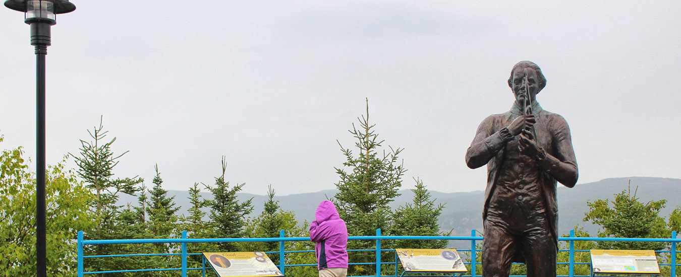 Captain James Cook—one of history’s greatest explorers and surveyors—is facing the wrong way. He has his eye to the sextant in his hands, looking through it at the surrounding Blow Me Down mountains with his back to the view of Corner Brook and the Bay of Islands. Of course, unlike me, he’s seen it all before.