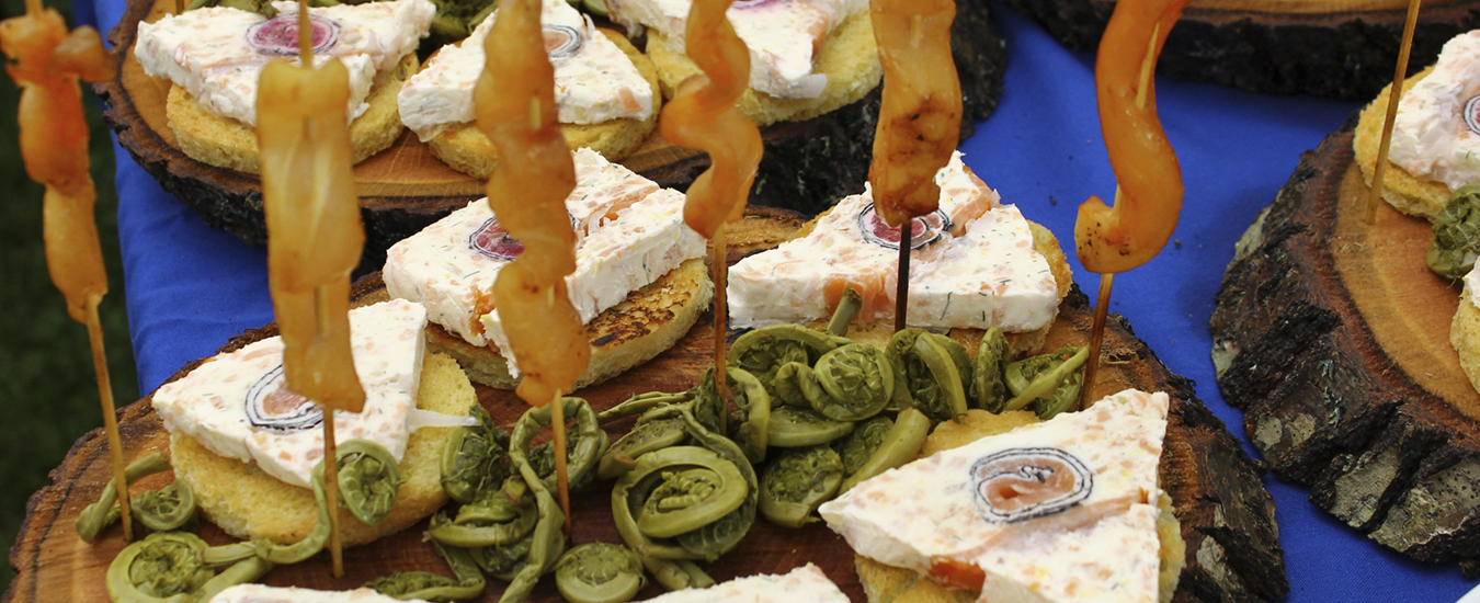 Header caption: Candied salmon and pickled fiddleheads at the Indulge Festival