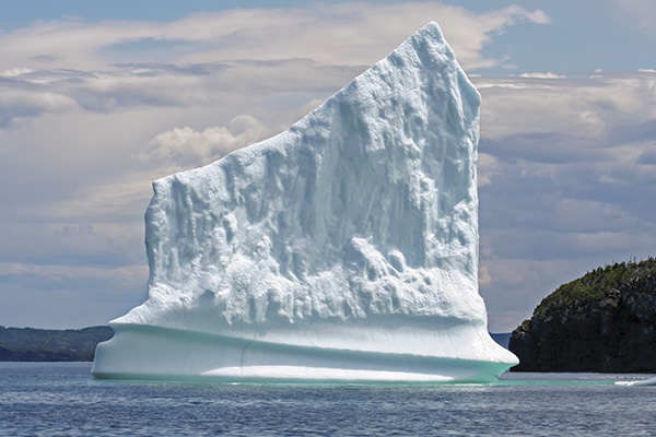 It’s a gloomy, blustery day with rain threatening, but when I see them, I can’t help but stop the car and head down to the water’s edge. A dozen curious onlookers are crowded onto a rock, gazing out over a small iceberg anchored on the rocky bottom of Deadman’s Bay on Newfoundland’s east coast. Two smaller chunks of ice float nearby and a larger iceberg lurks in the distance.