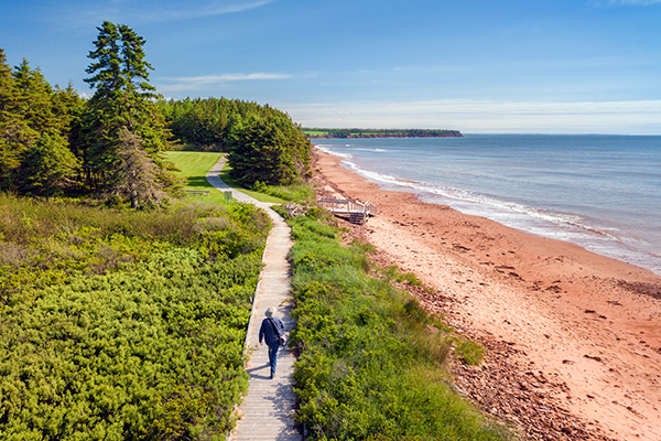 Parabolic dunes, a rare beach phenomenon, await discovery at the far northwestern end of the Points East Coastal Drive. They’re in PEI National Park at Greenwich on St. Peter’s Bay. Due to the interplay between erosion and anchoring plant life, these large dunes slowly migrate and take on a particular form. The 4.4-kilometre Greenwich Dunes Trail crosses a pond on a floating boardwalk before rising for views over the parabolic dune system.