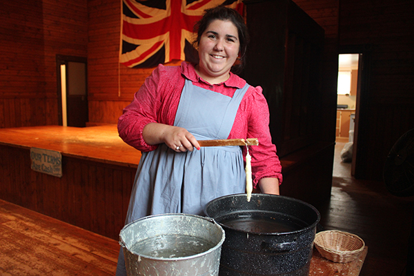 The hall doubles as Anna’s Tea Room, so when I finish my candle, I order the soup of the day with homemade biscuit, a cup of tea and some ginger cookies. While I wait for my lunch, I check out the display of period parlour games like “How Silas Popped the Question,” marbles, and liars dice—instead of numbers, the white cubes are marked with playing cards from the nine up to the ace.