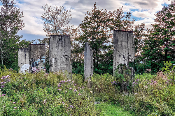Pieces of the former Berlin Wall provide a startling accent in the Pollinator Garden at Dalhousie Agricultural Campus, Bible Hill, N.S.