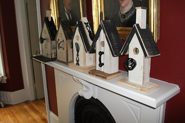 No material is ever too old or too precious for a birdhouse, and some of them are downright historical. A few years ago, the current owner of Amherst’s three-storey department store built in 1906 as Two Barkers (which later became Margolians, which later became Dayle’s) offered him wood from the original store and he was able to make a collection of Barkers birdhouses inspired by that beautiful old building.