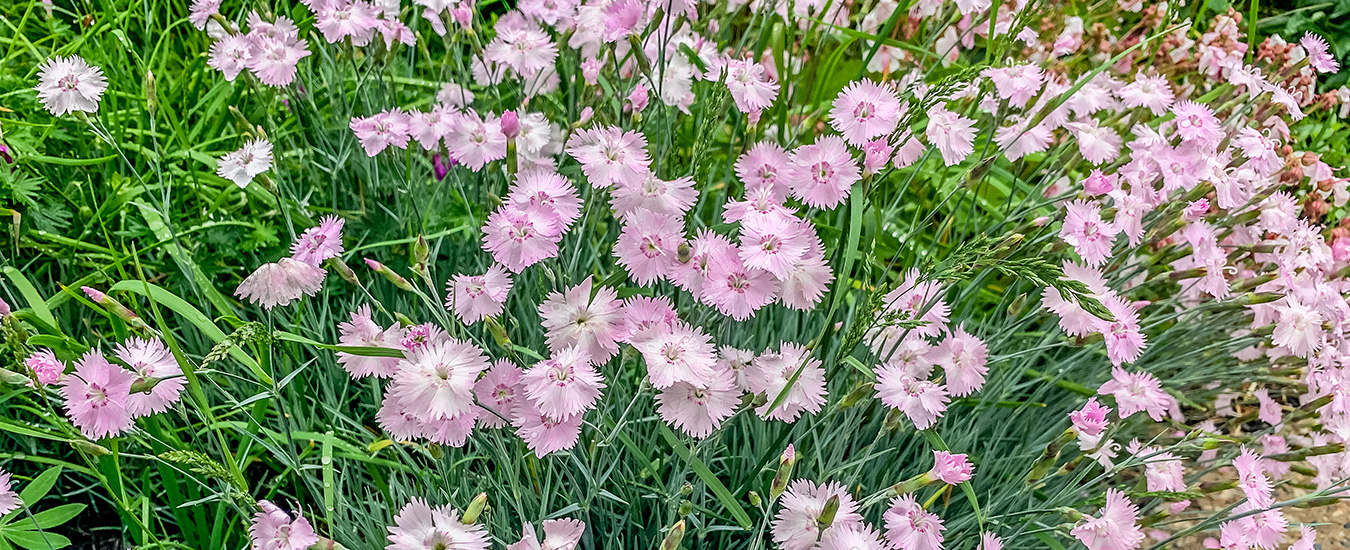 Dianthus. Whether you call them pinks, carnations or sweet William, members of the Dianthus genus are showy, deer and rabbit resistant perennials. Many are fragrant, and many sport grey-green, needle-like foliage that adds a nice colour and texture.