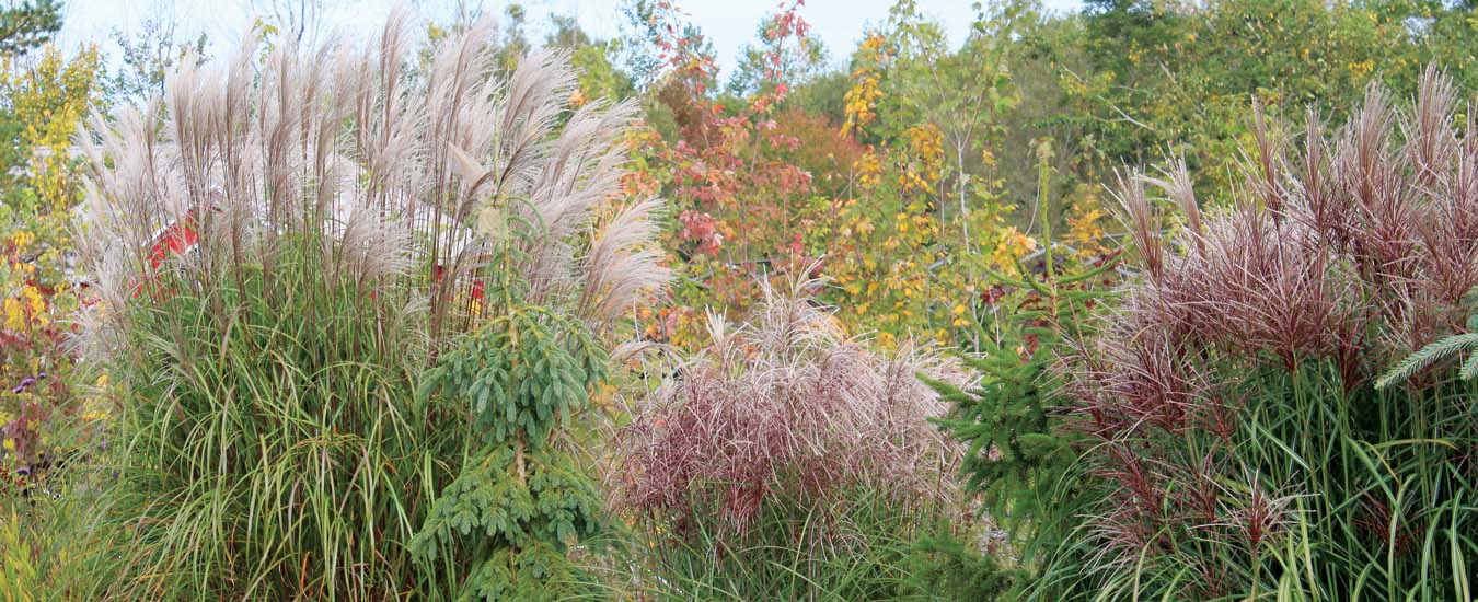 Perennial grasses like these Miscanthus varieties put on a great late season show.