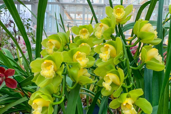 a green cymbidium orchid, which is fairly easy to grow in-home