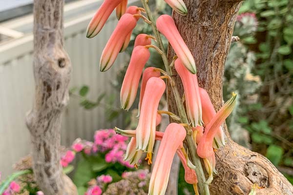 Other succulents produce flowers at various times of the year, and some of them are quite remarkable looking. I have a fairly…extensive collection of succulents ranging from the petite and bizarre Lithops, or living stones, to varieties of aloes, haworthias, echevarias, sedums, and more. (Yes, I have a lot of plants, no idea how many). The flowers of succulents aren’t always large or showy, but what they lack in size they make up for in colour, texture, and long bloom time. Many succulents put up long flowering stems that will have a procession of flowers lasting weeks, and while some have clusters of very petite flowers, others have colourful bell-like flowers in shades of orange, pink, red, and yellow, and almost resemble porcelain. Even when not in bloom, the plants boast unusually coloured and patterned foliage that makes them even more appealing.