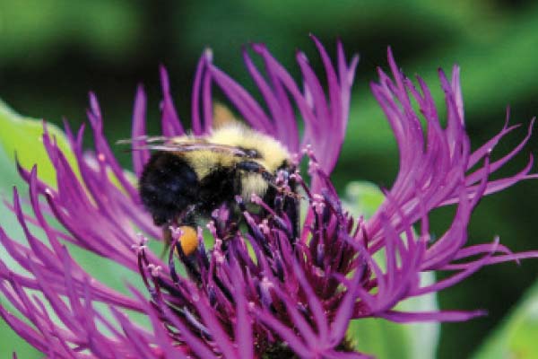 From mid-May until midsummer, add peonies, poppies, mountain bluet and relatives (Centaurea), astilbes, salvias, speedwells (Veronica), pinks and sweet William (Dianthus), false indigo (Baptisia), blue star (Amsonia), herbs such as borage, lavender, chives and comfrey, sea holly (Eryngium), globe thistle (Echinops), bee balm (Monarda), and the very important echinaceas and milkweeds (Asclepias). Try ornamental clover, Trifolium rubens, for a handsome and unusual perennial that is a magnet for most pollinators. Vines such as honeysuckle and hardwood trees such as lindens and magnolias are also excellent choices. And don’t cut the flower stems off your hostas—bees and hummingbirds love these white or purple, and often fragrant, tubular blooms.