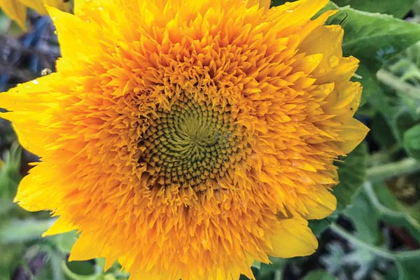 For those who are fascinated by oddities in nature, the florets in the centre of the sunflower head grow in interconnecting spirals of Fibonacci sequences of numbers, not in circles as you might think at first glance. This is a common occurrence in plant growth, including in evergreen cones, pineapples and artichokes, succulents, and flowers with a composite flower head. Without getting too much into that discussion, suffice it to say I would have done much, much better in math and algebra (maybe even calculus) if someone had brought plants into the discussion!