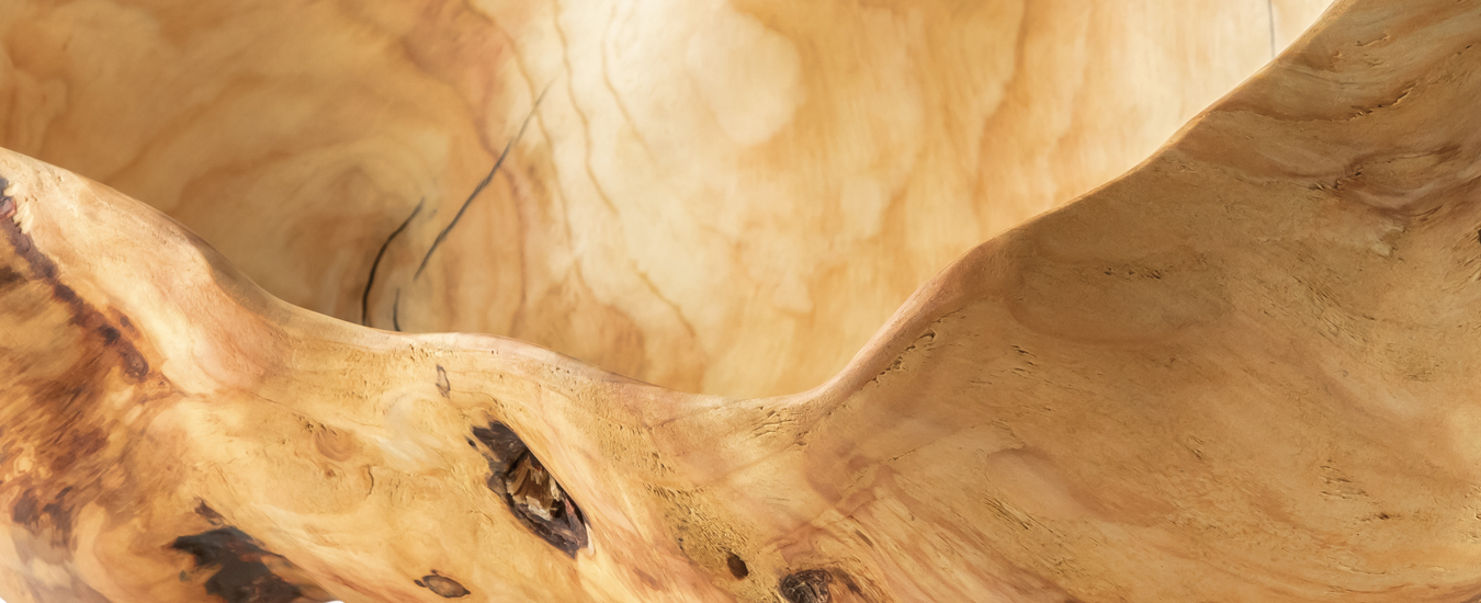 “My pieces are made to reflect what nature has created, keeping the organic shapes, embracing characteristics and leaving the effects of insects, time, and disease,” says Tubman.