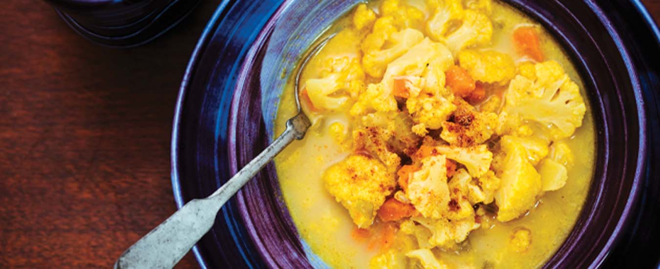 In preparing for this story I knew that I wanted to include a hearty corn chowder recipe because it is one of my all-time favourite dishes. The second chowder was inspired by a seafood chowder that I had at Dhaba; a lovely Indian restaurant in Halifax. They have a seafood chowder seasoned with tandoori spices that is hands down one of the best chowders I have ever eaten. The flavour is unexpected but so wonderfully comforting that I chose to re- create it using cauliflower as my main ingredient.