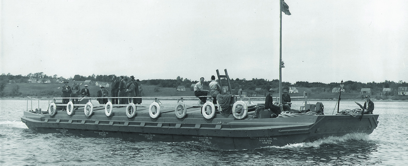 The barges were first tested in Mahone Bay in October 1943, before a group of War Production Board officials, construction company executives and officers of the three armed services.