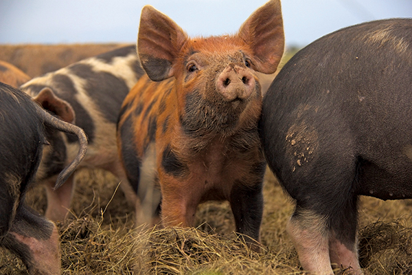 Dozens of piglets race towards us, squealing and leaping in the air with excitement. Behind them, two large sows and a boar plod placidly. On reaching the fence, the young pigs start rooting through the soil and toss hay into the air in what seems to be a mix of foraging and playing. They, like all the animals at Boyle Family Farm, exude a sense of contentment. And that’s the goal.