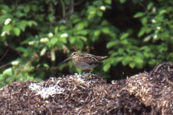 The following spring I was working on the woodpile when a noise erupted from the sky above. A snipe appeared, landing on a pile of eelgrass about three metres (10 feet) away! It was Herman, loudly announcing a triumphant return. Herman stayed long enough on the eelgrass for me to take a picture. I never saw that snipe again, but it was wonderful to realize that it had migrated south, and found its way home the next spring. Herman seemed happy about the accomplishment too!