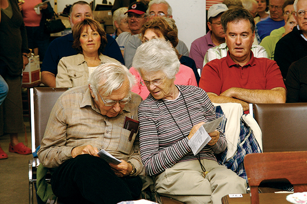 Trevor Smith is standing to the right of the podium. He operates a small antique shop and the auction is his main source of inventory. He says the sound of Sloat’s voice is the draw. I look down the front row. People are tapping their toes to the rhythm.