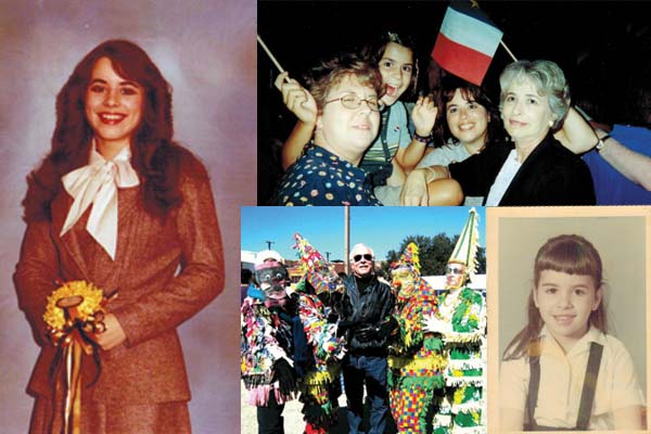 Clockwise from above: Angie as homecoming queen, Kaplan High School, 1980; Celebrating the first Louisiana World Acadian Congress with her mother, daughter and friend in 1999; First grade, Goretti Catholic School, Lake Arthur, LA; “Running the Mardi Gras” with her family in Louisiana, Angie’s favourite time of the year. Courtesy of Angie Cormier.