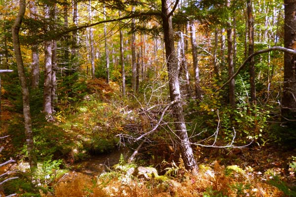 Water from the two brooks merged on the valley floor. There, generations ago, about 10 acres of white and black ash, yellow birch, red maple and white spruce had been cleared and the land was fenced for pasture. Heavy domestic animals subsequently trampled the original stream channels, causing the water to run willy-nilly over the valley floor after heavy rains. Fish passage was blocked from the harbour to the forest. Exposed to sunlight during the summer and into the fall, that part of the floodplain dried out completely. After the livestock was removed from this pasture, willows and alders began growing in over it. This is nature’s way of beginning to heal the land, and, in time, the tree roots would encourage the creation of new brook channels to carry water downstream. With that comes fish passage.