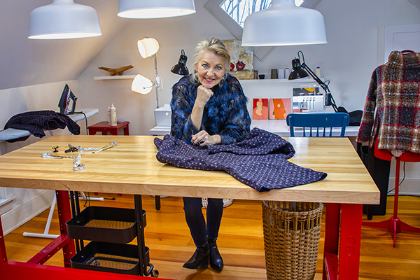 “I wear the prototypes. The comments I hear let me know what needs to be tweaked,” says Matheson as she examines the new creation. “I’ll regularly adjust this or that. I sew until I’m happy with the sample. Only then do I send the pattern and fabric to the seamstresses.”