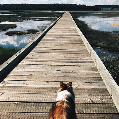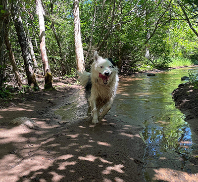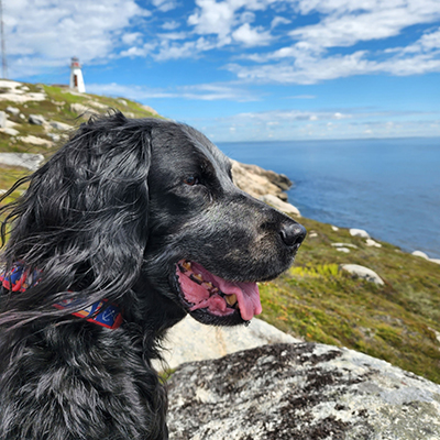 Admiring the view Coullah is a 13-year-old Blue Picardy spaniel. She still has a goofy personality and is a true coastal companion walking the trails of Chebucto Head and cruising Crystal Cresent Beach.