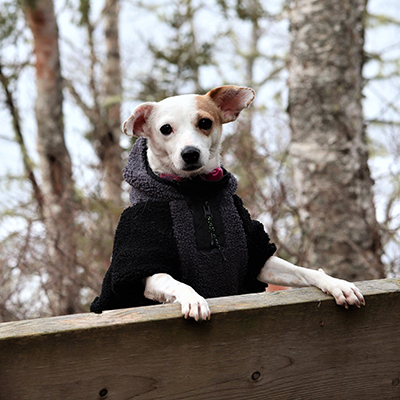 Don’t fence me in Phoebe is a terrier mix who found her forever family in 2022. She was adopted from a rescue group in Texas. She has been through a lot in her four years but loves her new home in Nova Scotia and is happy to give kisses and shake paws for a treat.