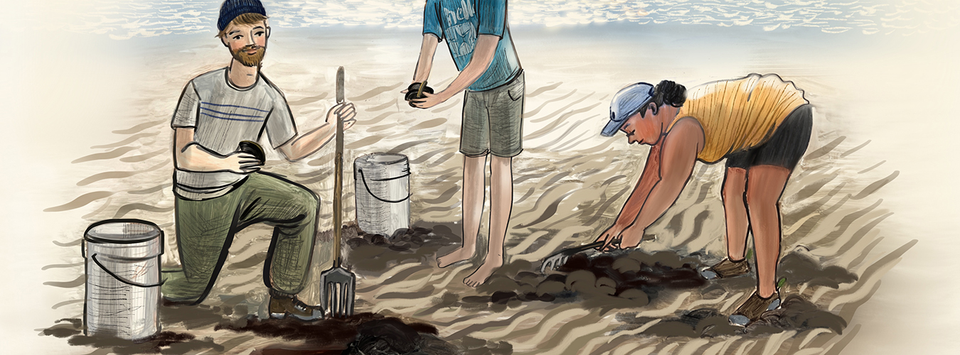 For many Saltscapers, a summer rite of passage is clam digging, finding softshells, bar clams, razor clams, and quahogs to enjoy in a boil on the beach or in assorted dishes at home.