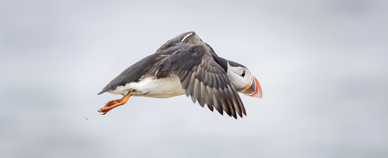 Puffins spend most of their life on, under, or flying above the Atlantic. They only come ashore to nest and raise their young.