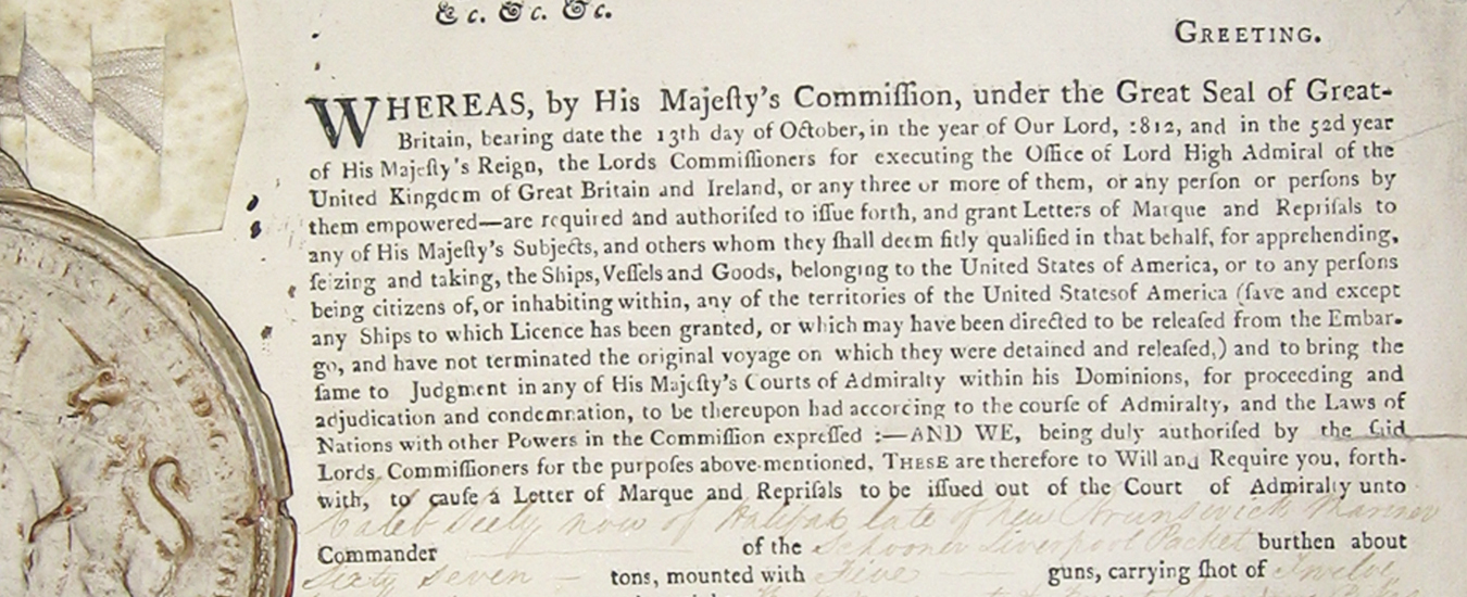 Starting in the 16th century, Britain (and other countries) legalized the seizing of enemy ships by private citizens, or privateers. By providing merchant ships with legal paperwork called a “letter of marque,” Britain effectively expanded its naval forces with merchant vessels armed with weapons and fighting crews. Privateers worked for the profit that came with the capture and sale of enemy ships and their cargo. Because of Nova Scotia’s strategic location, good ports, experienced seamen, and British naval presence, it became a centre of privateering.