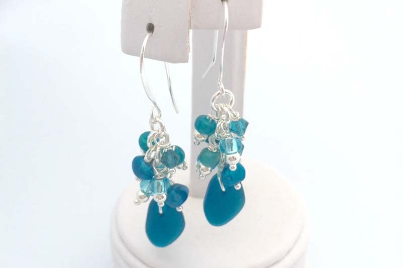 Beautiful cultured Aqua sea glass paired with Swarovski crystals and gemstones. A wonderful reminder of our beautiful coast