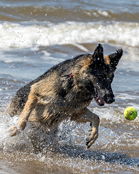 Tali always wanted to fetch her Chuck-It frisbee. ALWAYS! After an entire day spent on, in, or near the water, and even as the sun was going down, Tali would ask for just ONE MORE throw. This photo captures Tali's true spirit. Can you spot the frisbee?