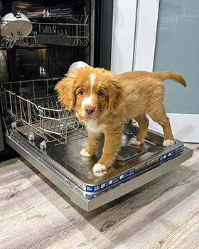 Within weeks of moving into his forever home, Gimli realized just how essential he was; the dishes were in desperate need of his pre-wash expertise!