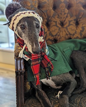 Enjoying the pooch plaid life.